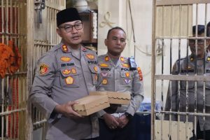 Karo – Wujud kepedulian di bulan suci Ramadan, Kapolres Tanah Karo, AKBP Pebriandi Haloho, S.H., S.I.K., M.Si, memberikan makan malam tambahan kepada seluruh tahanan di Rumah Tahanan Polisi (RTP) Polres Tanah Karo, Sabtu(28/2) pukul 18.45 WIB.
