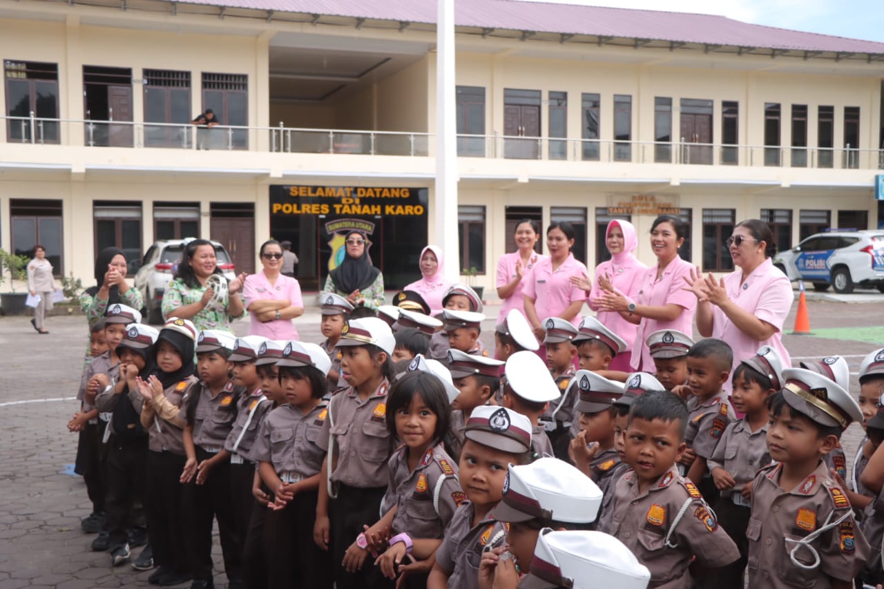 Kabanjahe, Karo – Polres Tanah Karo menerima kunjungan kegiatan outing class anak-anak TK Kemala Bhayangkari pada Selasa (30/9) di Mapolres Tanah Karo. Kegiatan ini berlangsung penuh antusiasme, di mana para siswa dikenalkan dengan berbagai hal seputar dunia kepolisian.