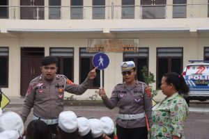 “Anak-anak diajarkan mengenal rambu-rambu lalu lintas secara sederhana dan diperlihatkan beberapa jenis kendaraan dinas kepolisian. Dengan begitu mereka bisa lebih paham tentang pentingnya tertib lalu lintas sejak dini,” ujar Iptu Sri Wahyuni.