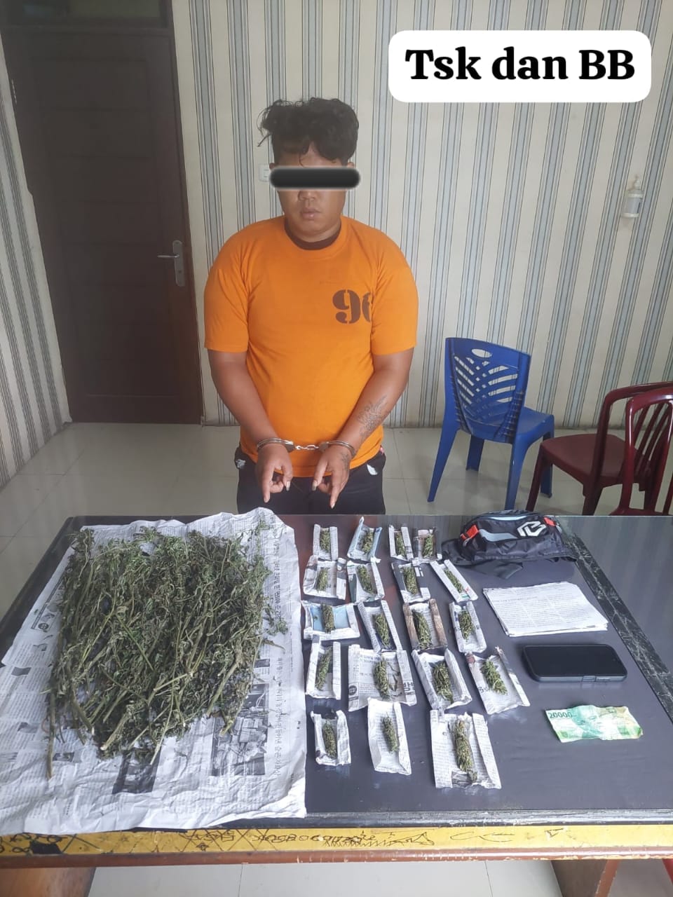 “Dari hasil penggeledahan, petugas menemukan 1 bungkus besar ganja kering seberat netto 190 gram, 19 amp ganja kering dengan total berat 27,19 gram, 13 lembar potongan kertas koran, uang tunai Rp20.000, satu tas selempang hitam, serta 1 unit handphone Android merk Infinix,” jelas Kapolres, Kamis(2/10) pagi di Mapolres.